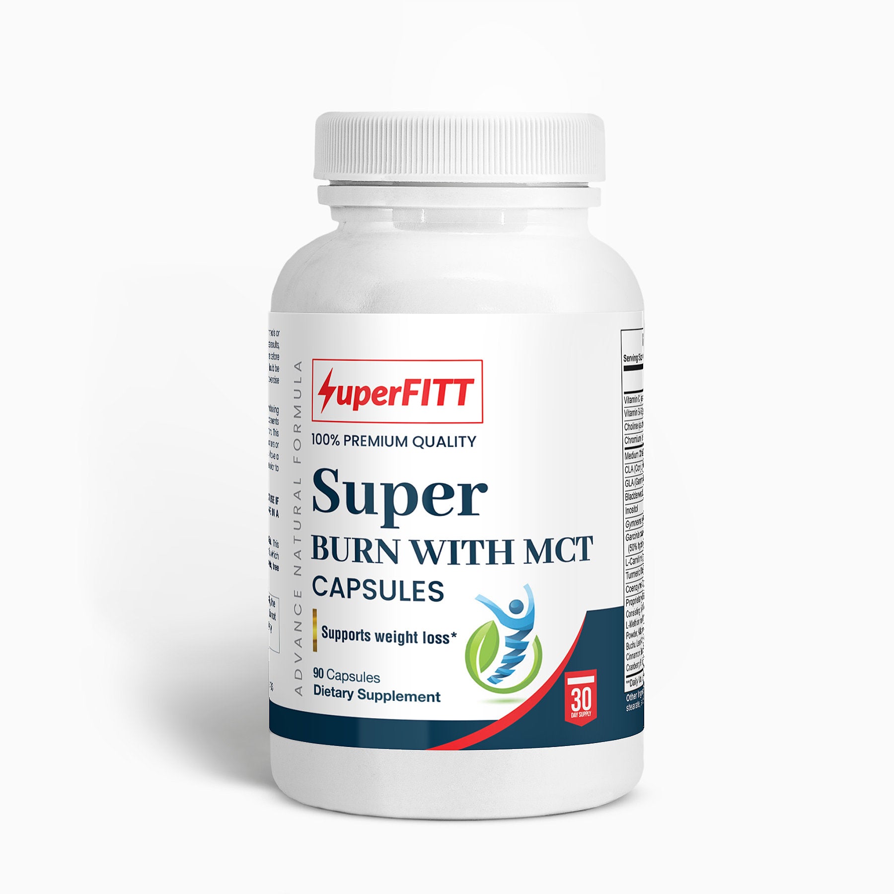 Fat Burner with MCT combines Vitamin C, Vitamin B6, Choline, Chromium, L-Carnitine, and medium-chain triglycerides (MCT) to deliver a healthy approach to facilitating metabolic performance and consequent weight loss.